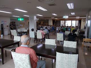 各コースごとに引率職員がつき,集団下校を行いました。今日は雨天のため,雨天バージョンの集団下校になりました。雨天バージョンは,体育館・会食室・あさぎり・家庭科室の校内に各色ごとに集まり,点呼を行いました。