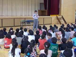 まず最初に名探偵コナン,レモン,トトロ,ポニョ,キューピー3分間クッキングテーマ,ファミリーマートに入った時の曲などをソプラノリコーダーを使って,披露してくれました。子ども達は知っている曲だけに「オー!」とか「知ってる!」と興奮気味に喜んでいる姿が見られました。