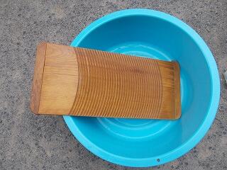 このたらいと洗濯板で洗いました。