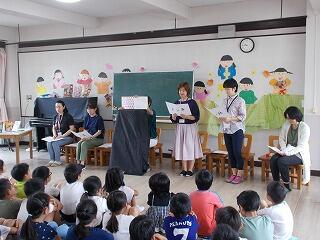 読み聞かせボランティアの方々による4年生児童対象の「落語絵本」がありました。国語の学習で既に落語とは何かを学び,その発展として,今回は読み聞かせボランティアの保護者の方々により,落語を披露していただきました。