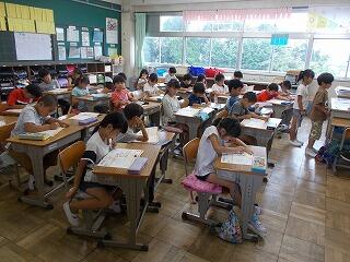 夏休みにも関わらず,保護者の方々のご協力のもと,普段2年生と3年生の天の川学習教室とステップアップ学習会に参加している児童の中からの希望者を対象に今日は天の川学習教室が開講されました。算数を中心に頑張りました。