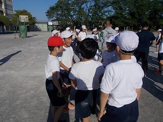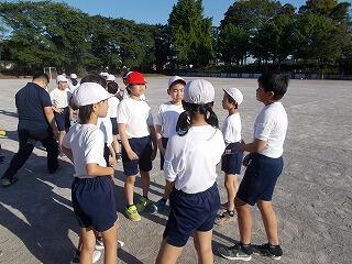 今日のメニューはリレーと顧問より話がありました。子ども達はいい表情で話を聞いています。