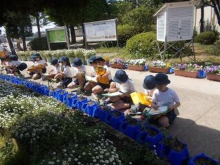 植え終わると,ミニトマトの苗の様子を観察をします。