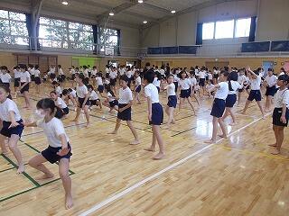 5・6年生が合同で,運動会の表現であるこいやにこいやの練習を行いました。5年生と6年生でペアになり,ペア同士で教わったり,見合ったりしながら練習をしていきます。先生が教えることと,このように異学年で交流しながら学ぶことを通しながら,完成に近づけていきます。