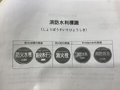 まずは,体育館で消防団の成り立ちや主な仕事内容等について教えていただきました。