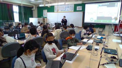 ITアドバイザーの先生からプログラミングについて教わりました。スタート地点からゴール地点まで,主人公をどのように動かせばよいかを考えました。お菓子の形をしたカードを並べて,撮影をすると命令をすることができます。子供達は失敗しながら,どうすればうまくいくか一生考えていました。終わった後,「また,したい。」「楽しかった。」という声が多く聞かれました。