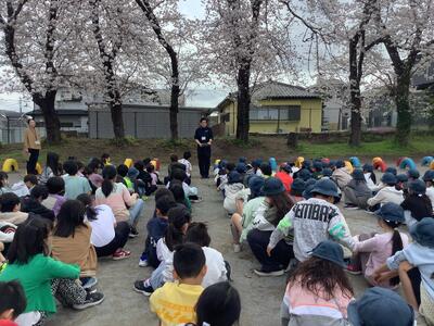 4月8日(月)の2時間目に,新4年生みんなで校庭に集まり,学年集会を行いました。4年生の各担任の先生方から,
