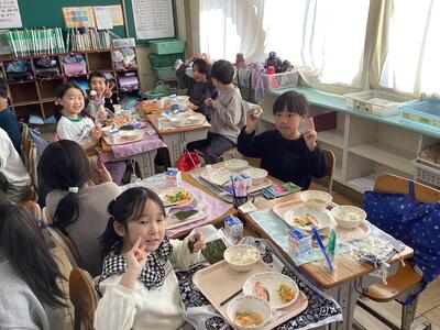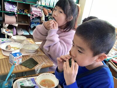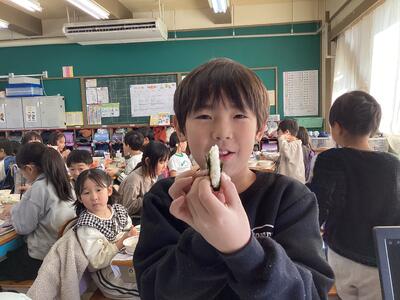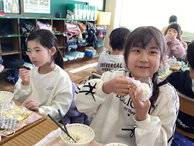 今週は給食で、おにぎりがでました!ラップにご飯を入れてにぎって、のりをまいて。みんなで楽しくおにぎり作りをしました。うれしそうに頬張っている子供たちが微笑ましかったです。