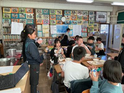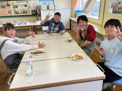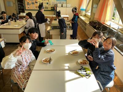 家庭科では、小学校で最後の調理実習をおこないました。 「火加減は大丈夫?」「一緒に洗おうか!」と声をかけ合いながら、手際よく料理を作る姿がありました。友達と協力してなにかを作るという、当たり前のようでいて特別な時間を、心から楽しんでいるようでした。