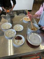 沸騰したお湯に入れると、しばらくして白玉がぷかぷかと浮き上がってきます。その合図を見逃さないよう、みんなで鍋をじっと見つめてました。