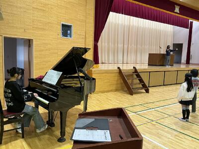 音楽委員会の児童による指揮と伴奏に合わせて元気な歌声を響かせました。
