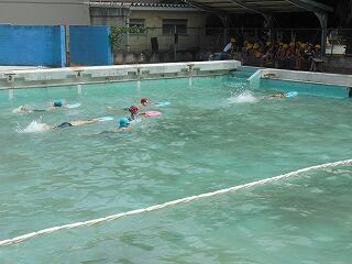 最後は待ちに待った自由時間です。入った児童全員が満面の笑みで友達と遊ぶ姿が印象的です。今週は天気も良さそうなので,次回が楽しみです。もう残り少ないですので,体調管理や水泳セットの忘れ物には気を付けてください。