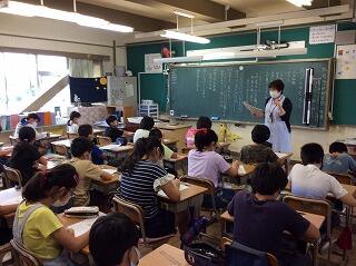 今日の5年1組の授業は,本単元の第1回目で,図書館司書の山田先生から情報を活用する際の注意事項などを学習しました。