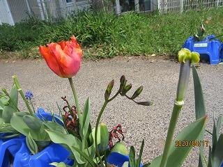 残念ながら休校中に枯れてしまった花もあったので,今日はチューリップの花がら摘みをしました。