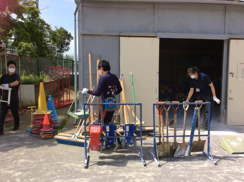 前回の一輪車倉庫に続き,今回は体育倉庫の掃除をしました。