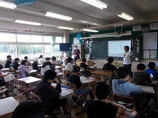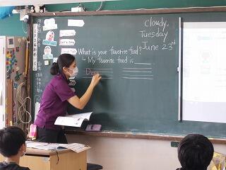 学習では,ALTや外国語授業支援員の先生と担任の先生とで,