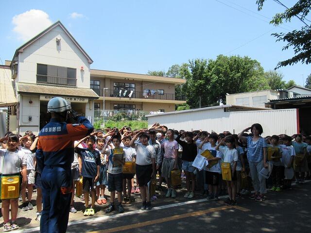 校庭で消防車を使った訓練を見せていただきました。