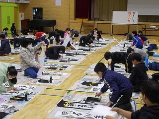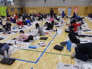 1・2時間目は,5年生が体育館にて校内席書会を行いました。冬休みに頑張って練習をしてきた成果を発揮する日です。とても真剣に集中して書いていた姿が印象的です。