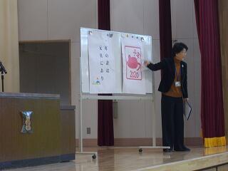 「1年の計は元旦にあり」ということで,みんなで良いスタートを切っていきましょうとお話されました。また,「子(ねずみ)」という字について,ねずみは子どもをたくさん産むことから,子孫の繁栄という意味も含まれているとお話されました。
