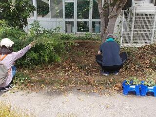 環境美化係の方々が,校庭の隅々の草取りをしてくれました。