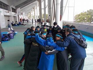 レース直前は,男子で気合の円陣です。駅伝は個人で走るのではなく,チームで走ることも再確認しました。「絆のたすきリレーをしよう」