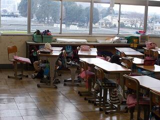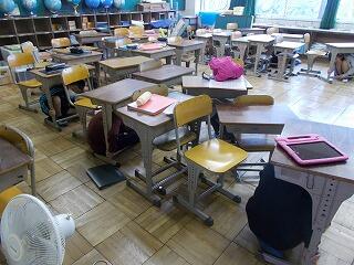 毎月1回,色々なパターンでワンポイント避難訓練を行っております。今日は,昼休み中に地震が起こった時の避難の仕方を確認しました。昼休みということで,教室,廊下,トイレ,校庭,階段など色々な場所にいるケースが考えられますので,それぞれの場所で,避難の仕方も多少異なりますが,基本は「物が倒れてこない,物が落ちてこない,物が移動してこない」所を自分で考えて避難することを学びました。授業中のように担任の先生がいなくても,いつでもどこでもしっかり避難できるように訓練をしています。