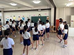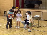 その後,先生たちも前に出て,体の大きさを比べたり,話しかけられても逃げる練習をやったりしました。