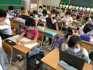 今日の柏市内は,熱中症警戒アラートが発令され,熱中症の危険性が極めて高い状態になっています。そこで,やむなく校庭と体育館で活動するクラブ活動はエアコンの効いた涼しい教室に移動して,プロの選手の動画を見て学んだり,次のクラブ活動に向けて作戦を立てたりしました。
