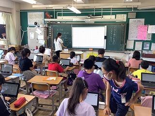 校庭に出ることのできない学年は,図書館へ行ったり,タブレット端末を触ったりしています。一人一台端末の利用も進んできています。