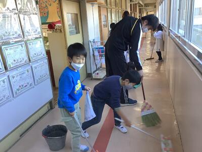 掃除の時間は,廊下掃除の子が「こっちに来て!」と連れていき,廊下の掃除を手伝ってくれました。