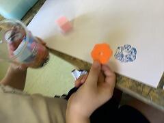 いつものように筆を使うのではなく,身の回りにあるものを使って,様々な方法で画用紙に色を重ねていきます。