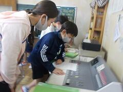 6年生に助けてもらいながら,机を拭いたり,ほうきで掃いたり,少しずつですが,1日1日できることが増えています。