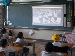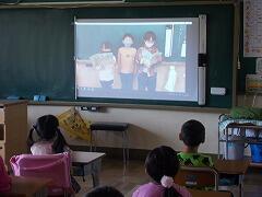 1年生を迎える会では,教室で事前に撮影した動画を視聴しました。どの学年の発表も趣向を凝らしたもので,1年生だけではなくどの学年の人たちも楽しめる内容でした。1年生に向けた発表なのに,2年生以上の人たちの中にも,席に座ったままダンスの振り付けを真似したり,クイズに参加したりする人がいて,何だか”ほっこり”してしまいました。