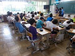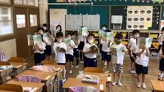 2~6年の各クラスでは,1年生の発表を真剣に聞いていました。1年生のほほえましい姿に,2~6年生のお兄さん・お姉さんも思わず笑みをこぼしていました。職員室の先生方も1年生の発表をパソコンを通してみていました。