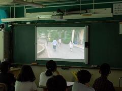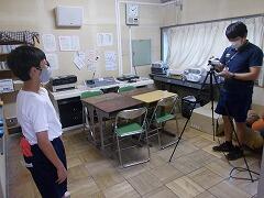 雨の日の練習は,TV放送を活用して行っています。陸上部の代表の人が,カメラの前で手本となり,それを各教室で確認しながら活動しています。