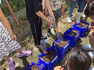 これからどうやって大きくなるのか,どんな花が咲くのか,いつ咲くのか,種は何個くらいできるのか,みんな興味津々で聞いていました。
