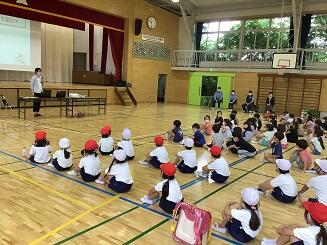 6月の生活目標「室内では安全にすごそう。」のお話では,雨の日の過ごし方について考えてもらいました。「室内で遊べなくてつまらない。」とか,「何をすればいいかわからない。」とか考えるのではなく,こういう時にみんなで話し合って,教室での過ごし方を考えたり,タブレット端末を使って技能を高めたりする時間にすることも一つではないかというお話でした。