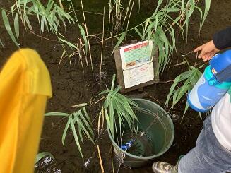 ザリガニを釣るルールが書いてあったり,バケツが置いてあったりしました。