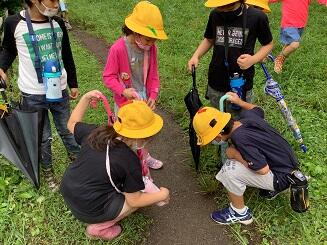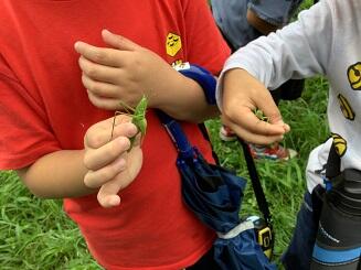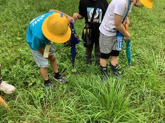 みんなでミミズを見ていたり,草むらで虫を探したり,たくさんの自然とふれあえました。