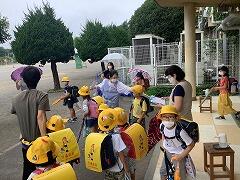 7/8(木)に1・2年生の引き渡し訓練が行われました。本来であれば全校で行うところでしたが,大勢の人が一堂に会して行うことができなかったので,今回はこれまで引き渡し訓練に参加したことのない1・2年生を対象に行いました。