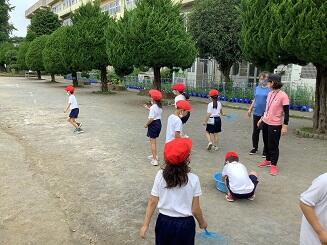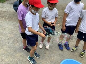 1年生は生活科で,水でっぽうとシャボン玉で遊びました。