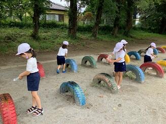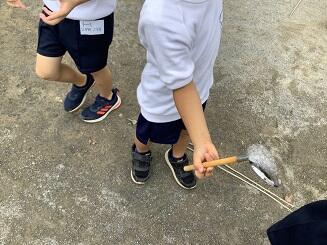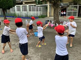 1年生 水でっぽうとシャボン玉で遊んだよ