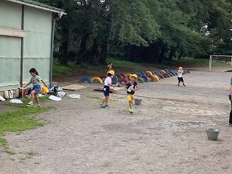 水で絵を描いたり,かけあいっこをしたり,走り回ったり,とっても楽しそうでした。