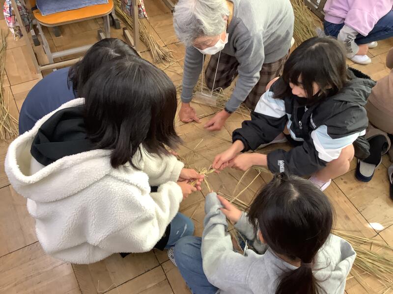 先日,下田の杜の方々に縄ないを教えて頂きました。自分たちで刈った稲穂を活用し,リースを作りました。これからのクリスマスやお正月に飾れそうな素敵なものになっております!1年間を通して下田の杜の方々と一緒に行ってきた体験活動もこれで最終です。子ども達は本当に素晴らしい体験ができたと思います!