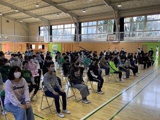 TV画面越しの挨拶でしたが,一人一人の思いは聞いている人たちにしっかりと伝わってくる様子がよくわかりました。直接,送りたかった拍手ですが,どの教室からも大きな拍手が聞こえてきました。