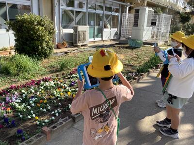さらに,今日は気温が上がり,すっかり春の陽気でした。「はるをさがそう」というテーマで校庭を散策しました。