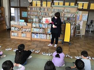 3組は,ひな祭りの日ということで,それにちなんだ本の読み聞かせを