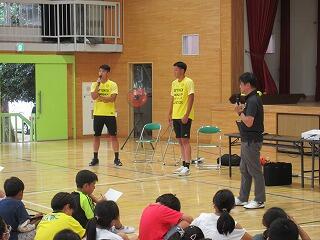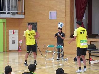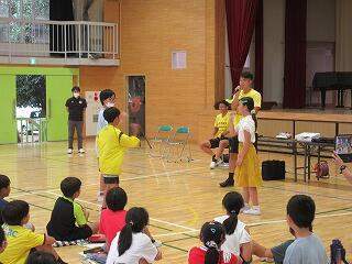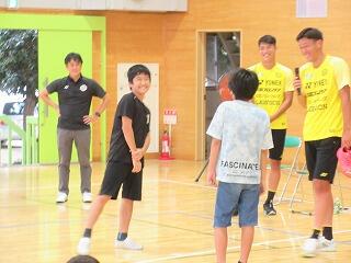 後半は,選手のプレーを少し見せていただいたり,数人の児童が一緒にゲームをさせてもらいました。