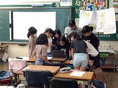 特別の教科「道徳」の学習では,タブレット端末を活用して自分の考えを視覚的に共有して,学び合いを深めています。回数を重ねていくうちに,タブレット端末の操作にも慣れてきました。