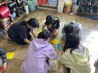 納得のいく作品にするために,並べ方を何度も試しながら,楽しそうに活動していました。